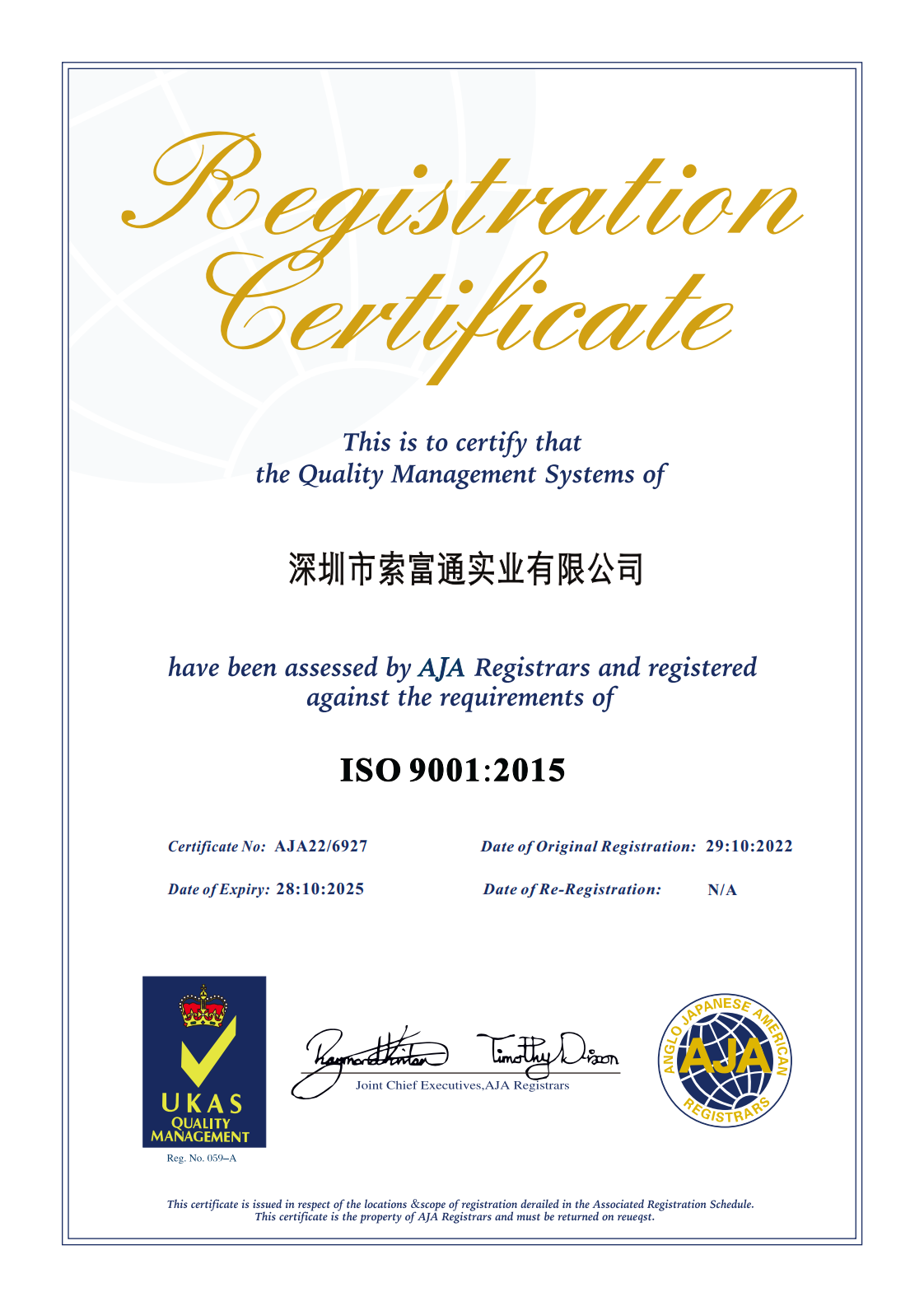 ??深圳市索富通實(shí)業(yè)有限公司,成本于1995年,是一家研發(fā)、生產(chǎn)和銷售可燃?xì)怏w報(bào)警器,氣體檢測(cè)儀的生產(chǎn)型企業(yè)。 公司秉承 “ 以德惠人,以誠(chéng)愛人 ” 的經(jīng)營(yíng)宗旨,自公司成立以來,堅(jiān)持以質(zhì)量與誠(chéng)信為先導(dǎo),產(chǎn)品研發(fā)與市場(chǎng)銷售并重,秉承“以人為本,互惠互贏”的理念,與資深氣體分析檢測(cè)學(xué)家保持合作,長(zhǎng)年提供最先進(jìn)的科研技術(shù)支持,公司也一直與且有國(guó)際先進(jìn)水平的傳感器制造商密切合作,確保了產(chǎn)品品質(zhì)和競(jìng)爭(zhēng)優(yōu)勢(shì)。公司所生產(chǎn)的產(chǎn)品已通過國(guó)家消防電子產(chǎn)品質(zhì)量監(jiān)督檢驗(yàn)中心及國(guó)家防爆電子產(chǎn)品質(zhì)量監(jiān)督檢驗(yàn)中心的檢驗(yàn),并取得了由國(guó)家消防認(rèn)證委員會(huì)頒發(fā)的《產(chǎn)品型式認(rèn)可證書》,產(chǎn)東省質(zhì)量技術(shù)監(jiān)督局頒發(fā)的《制造計(jì)量器具許可證》,由UKAS頒發(fā)的《ISO9001:2000》。
